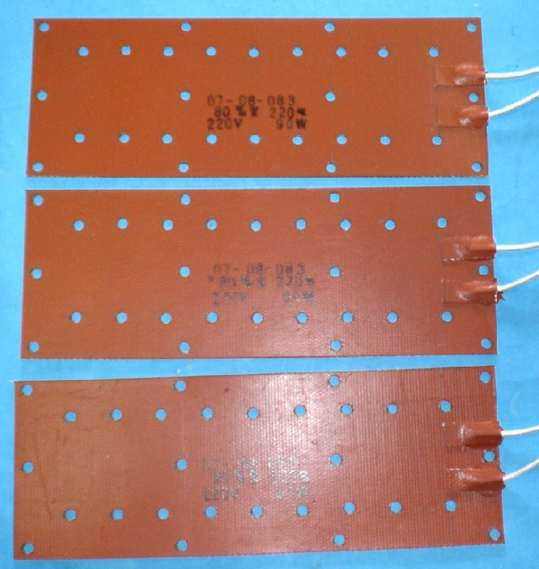 電熱片 安裝和使用注意事項: 1、電熱片接觸面應緊密貼合且無凹凸現象。 2、電熱片應避免浸水以免影響它的絕緣性能。 3、安裝電熱片時應先檢查安裝位置與電熱片尺吋是 否相符,使用電壓是否一致,應在指定電壓下使用。